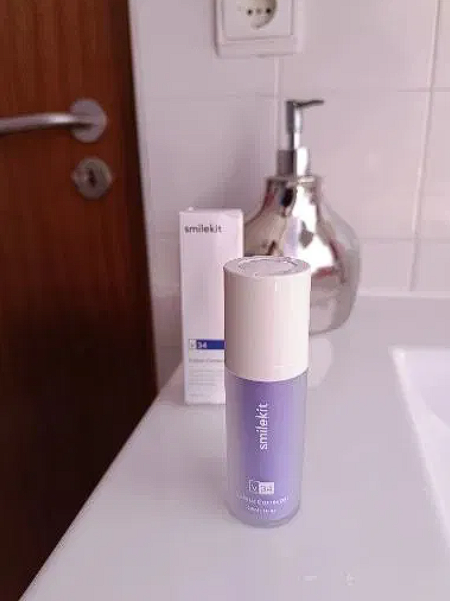 - Elimina manchas: La composición V34 corrige las manchas amarillentas, dejando una sonrisa uniforme y sin manchas.